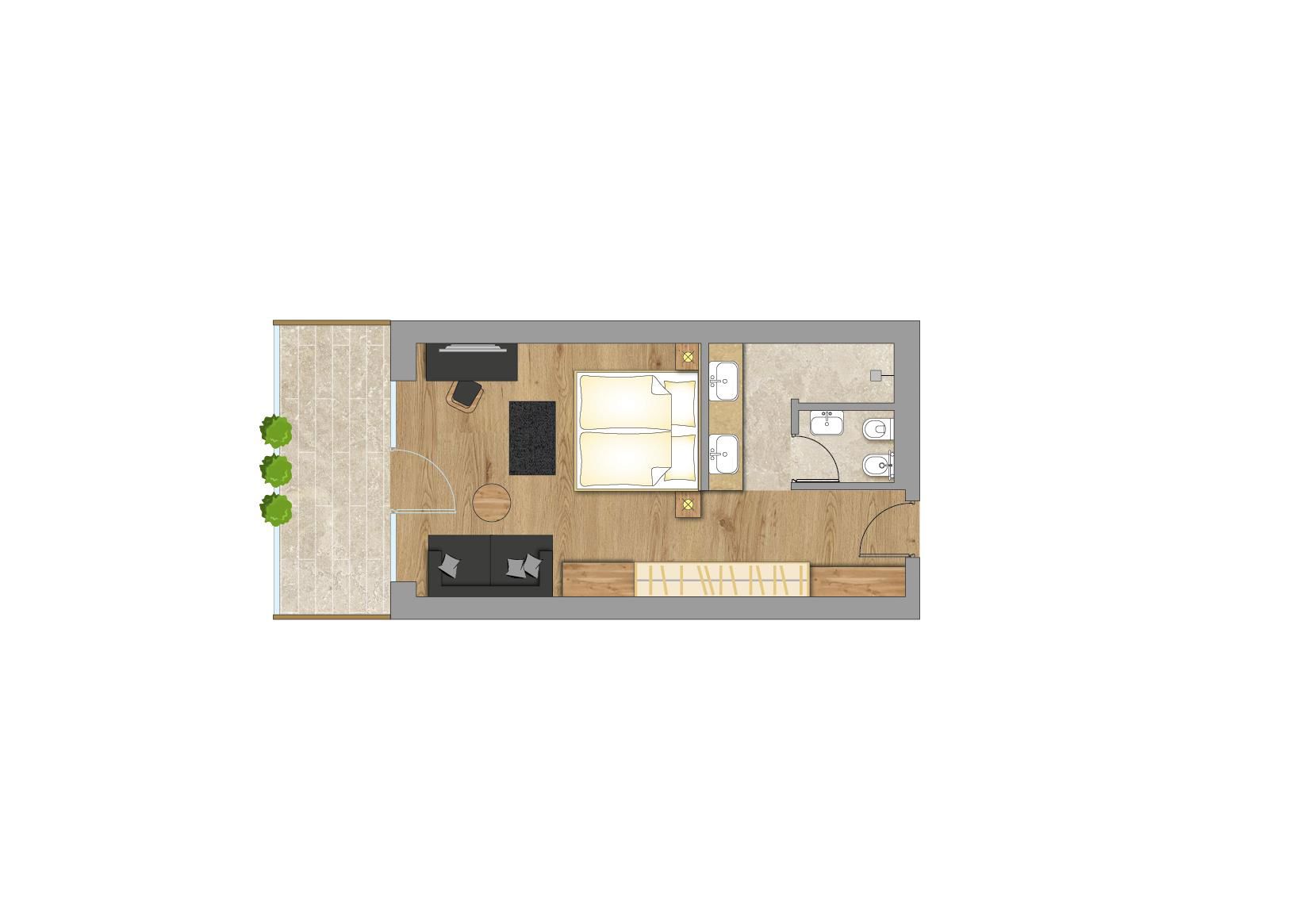 Breathtaking NEW Junior Suites in natural oak, facing east with a view of the marvellous mountain and valley landscape of the Dolomites.
