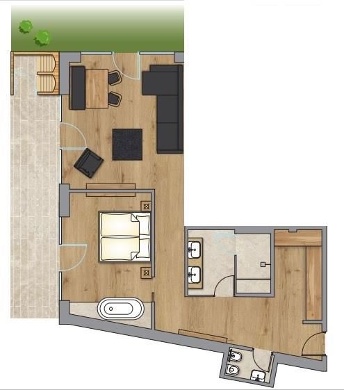 The "Exclusive Dolomite Suite" on the third floor with 80 m² (one sleeping room) south-facing and two private saunas