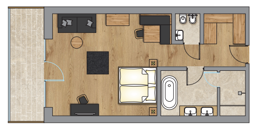 queste nuovissime Suite con direzione sud con meravigliosa vista sul Sassolungo